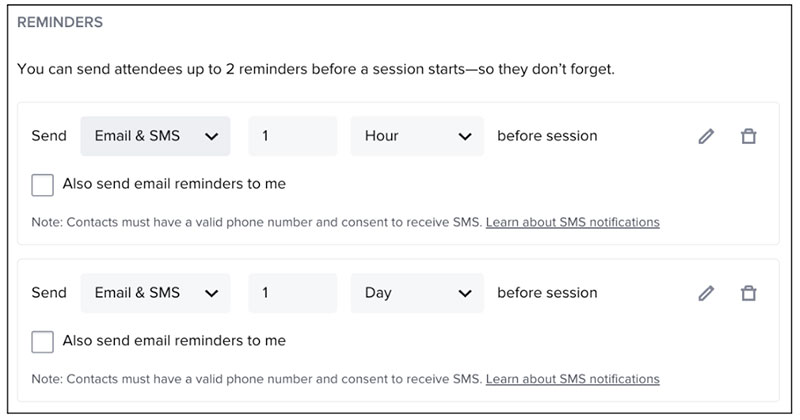 - Ability to send SMS reminders independent of Email reminders