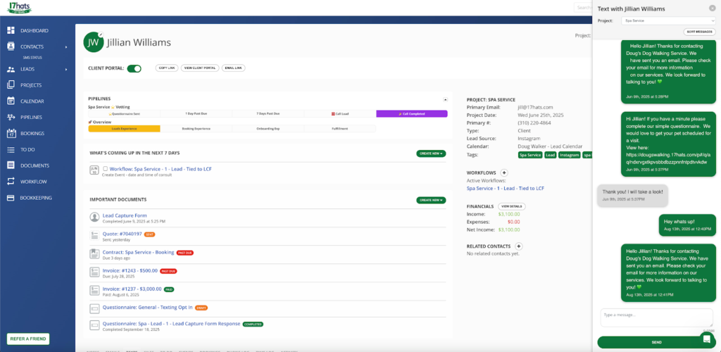 And that’s a problem, because clients will reply. “Got it!” “Can I reschedule?” “What’s your address again?” — these quick texts matter. 17hats makes sure they don’t get lost in the shuffle.