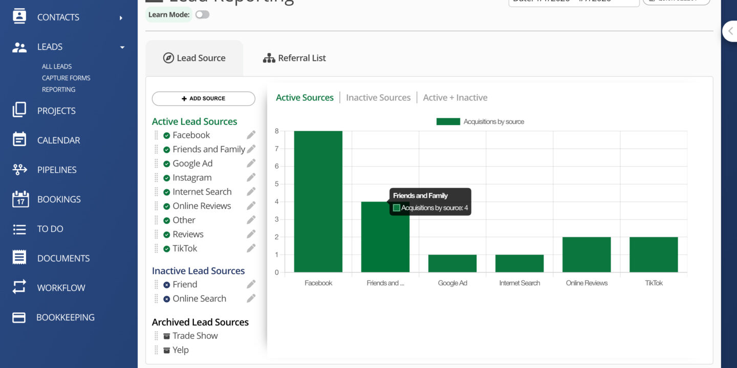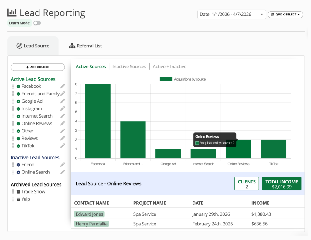 Marketing experts talk about touchpoints — the idea that a potential client needs to see or hear about you multiple times before they take action. Lead source reporting helps you understand which touchpoints are doing the heavy lifting for your business.