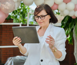woman using 17hats sms texting