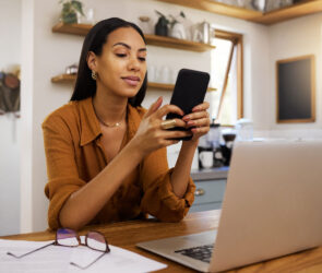 woman using 17hats sms texting